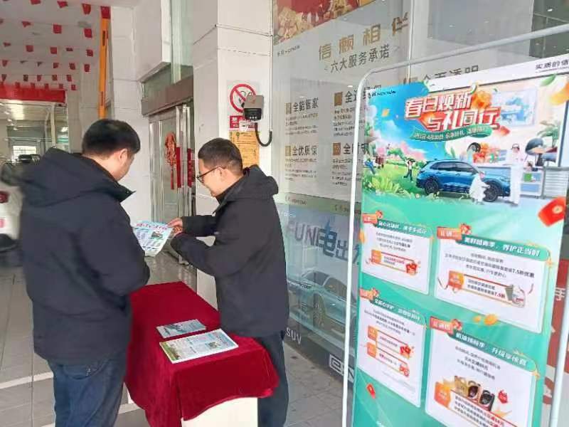 在售后服務(wù)大廳的客戶休息區(qū),公司設(shè)置了“車輛保養(yǎng)知識宣傳臺”,安排專業(yè)技師向客戶介紹車輛保養(yǎng)小知識和日常車輛使用常識。同時,為保障員工和廣大客戶生命財產(chǎn)安全,阜陽迎駕店邀請市經(jīng)開區(qū)交警隊開展安全駕駛教育,發(fā)放“0酒駕”宣傳冊,教育引導(dǎo)員工和客戶樹牢“開車不喝酒,喝酒不開車”的意識,并向所有進(jìn)店的客戶、快遞和外賣小哥贈送口罩。