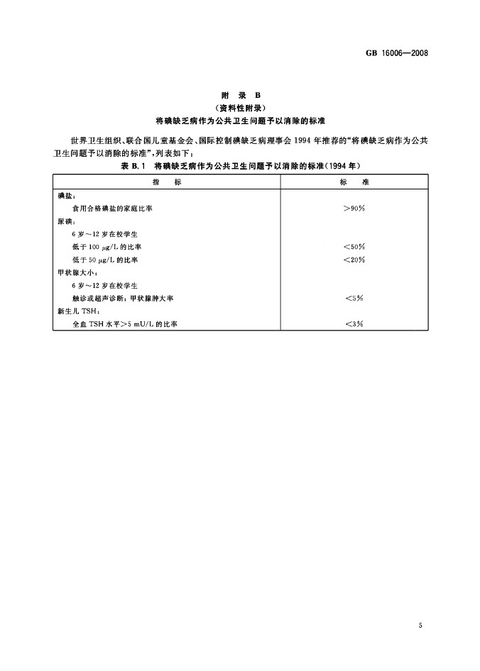 衛生部國標委發布GB16006-2008碘缺乏病消除標準